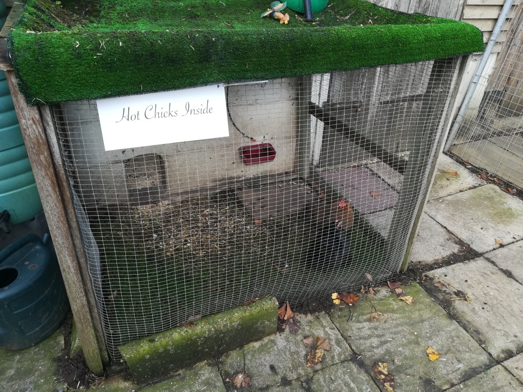 Even my cheeky bantams have a coop name – “Hot Chicks Inside”